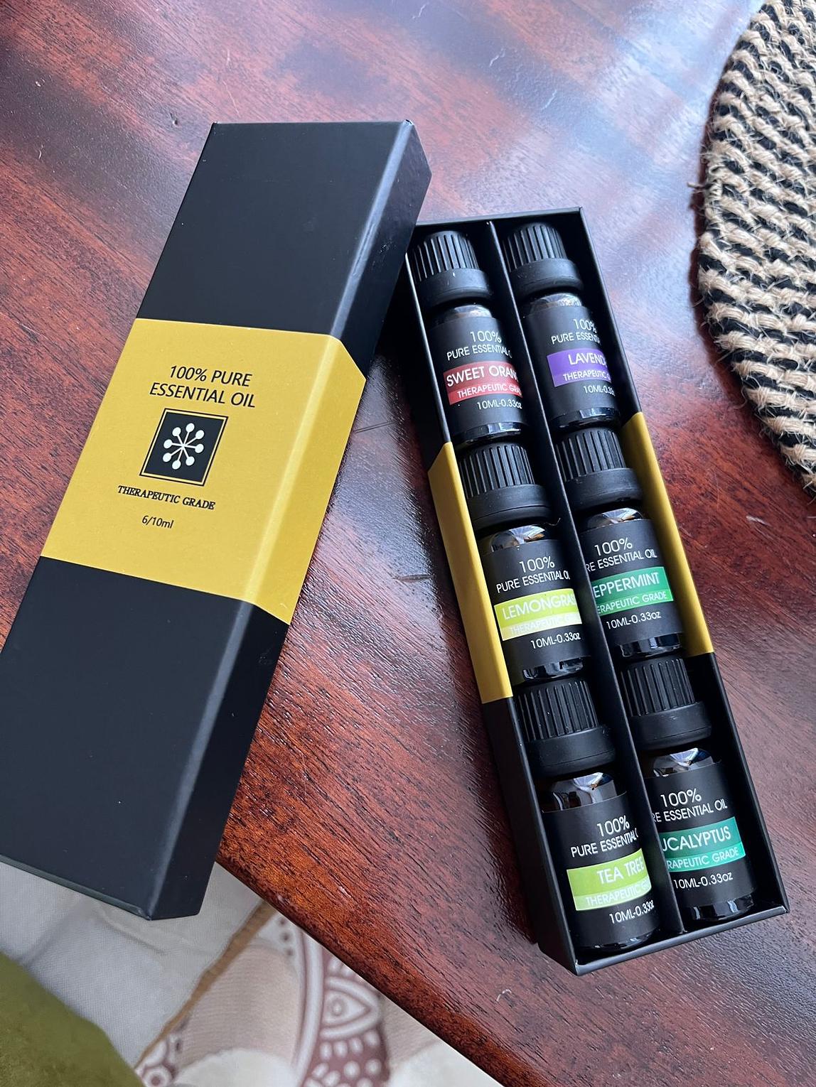 A set of 6 Oils. .Lavender .Eucalyptus .Sweet Orange .Lemongrass .Peppermint .Tea tree